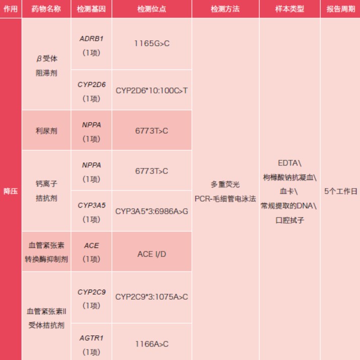 利用多重荧光PCR-毛细管电泳法,检测人类外周血液基因组中高血压相关基因多态性,为临床鉴别患者对高血压药物的敏感性提供帮助。