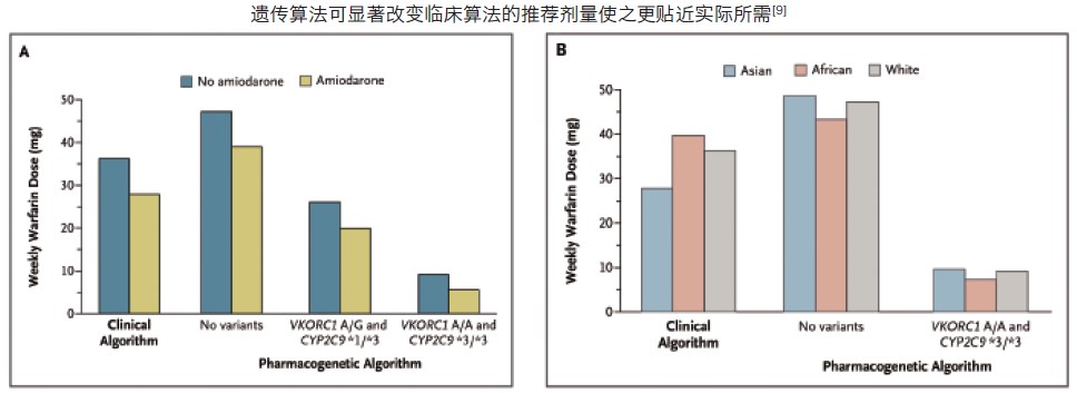 临床研究表明:与未考虑个体基因多态性的平行对照组相比,考虑了CYP2C9和VCORK1基因多态性的遗传算法更贴近病人实际所需剂量:INR值超出范围的时间比例降低(1个月时为42%比31%,3个月时为42%比30%),有效药物浓度时间比例增加(1个月时为58%比69%,3个月时为59%比71%)。