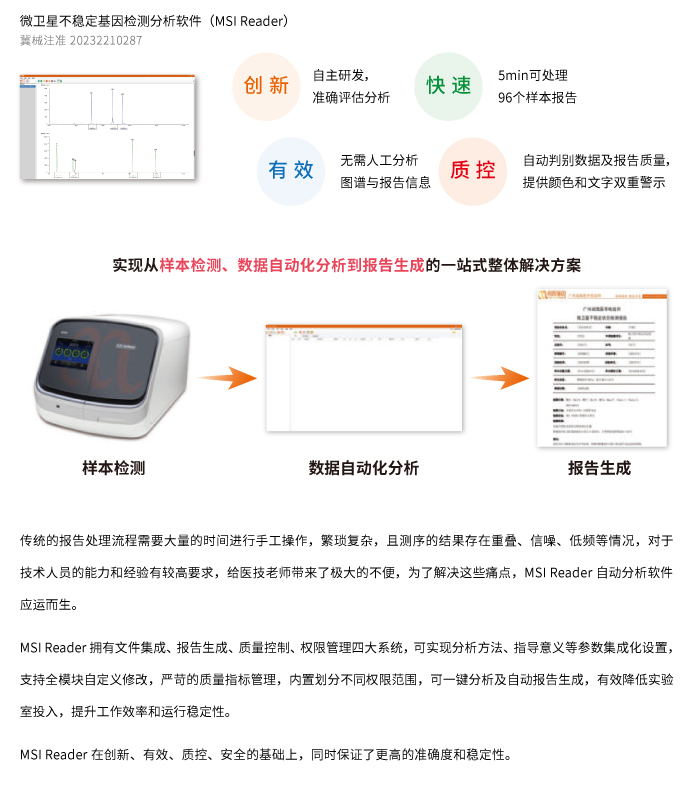 针对分子诊断领域的临床需求,阅微基因推出“分子诊断整体解决方案”,以智阅基因分析仪GenReader 7010为载体,搭载核酸提取仪、检测试剂盒、自主研发的Microreader自动分析软件,实现从样本、试剂到报告的一站式整体解决方案,将为中国分子领域带来全新技术变革。
