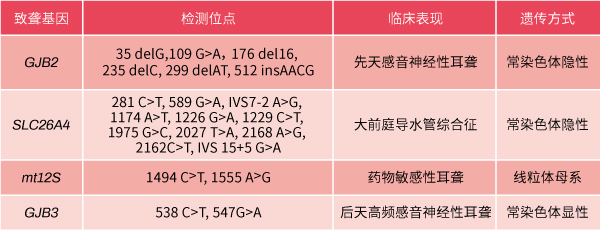 位点准确完善 包含4大中国人群常见的致聋基因,共21个位点