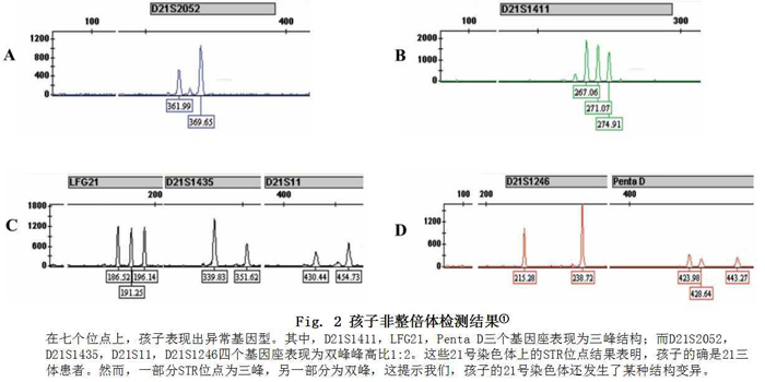 然而,STR分型的结果还带来了更多的问题:为什么有的位点是三峰,有的是双峰?这与典型的21三体基因型不相符。