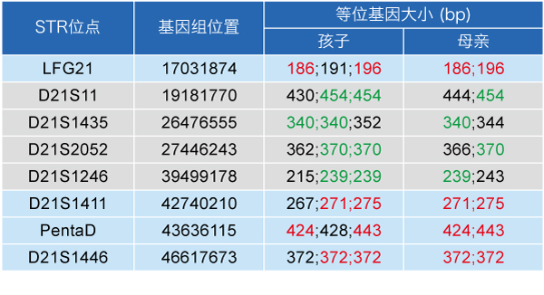 亲子问题倒是解决了,可一个疑问却留给了我们:如何解释这两处特殊的STR基因型?这种基因型提示我们,孩子可能为21三体,但也有可能是特殊的两处拷贝数变异(CNV)。为了确认孩子的真实情况,科研人员进行了一系列的后续实验。