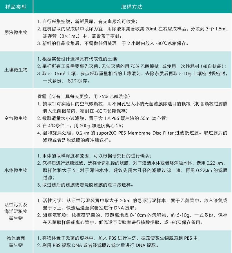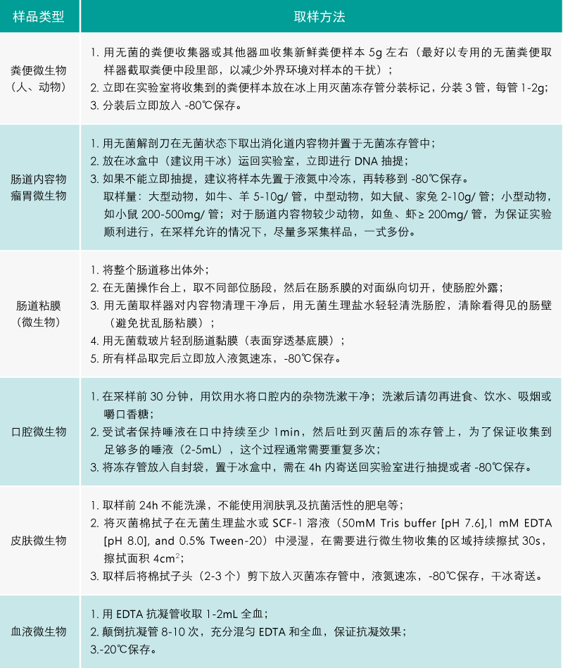 T:考虑到个体差异,后期组间统计学分析以及偏离样本,自然环境至少3个生物学重复,推荐5个;若是人类或动物的肠道内容物或粪便等样品,由于个体特异性高,建议10个以上的重复。