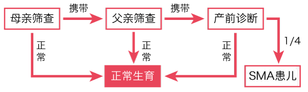 假如父母都是SMA携带者,那么生育的孩子有50%的可能会携带SMA致病基因,还有25%的可能会是SMA患儿。