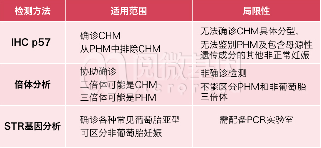 为了提高葡萄胎诊断及分型的准确性,人们探索了多种针对葡萄胎遗传学变化的分子检测手段,其中包括传统的流式DNA倍体分析、常用的P57免疫组化和新兴的基因多态性分析(STR基因分型)。