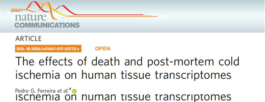 Ferreira, Pedro G., et al. The effects of death and post-mortem cold ischemia on human tissue transcriptomes. Nature communications.