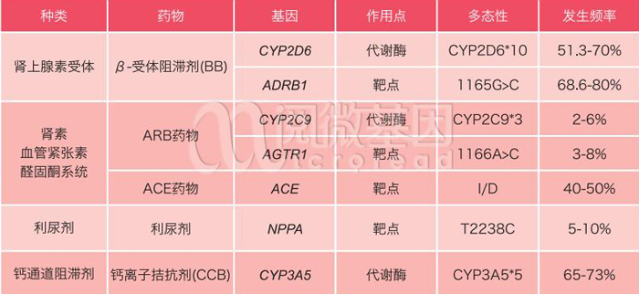 阅微基因高血压基因多态性试剂盒,针对常用的五大类降压药,选择中国人群携带多态性位点,提供临床用药选择与剂量调整参考。