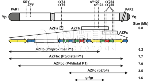 Y染色体和当前微缺失示意图