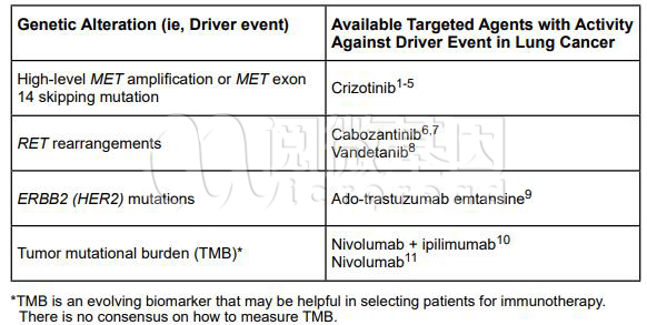 图2 NCCN非小细胞肺癌指南2019第5版——新兴生物标志物