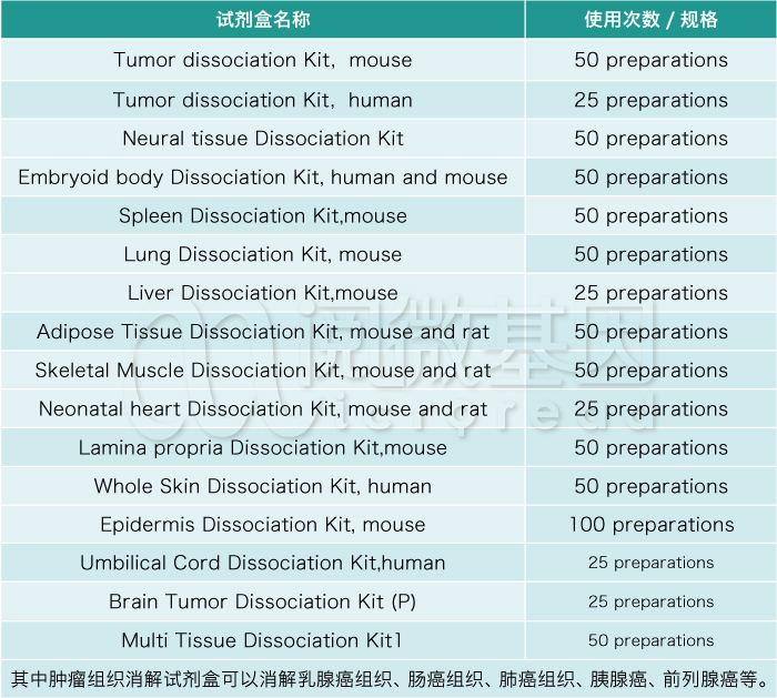 首选10x Genomics官方推荐的试剂盒品牌“Miltenyi 美天旎”,他家有多款商业试剂盒,可以进行组织解离和细胞分选。
