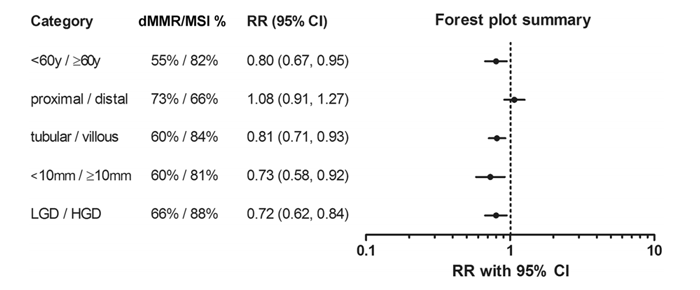 LS患者dMMR/MSI的相对风险分析