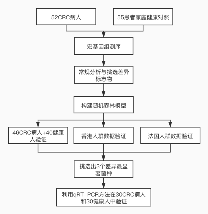 研究内容:通过比较健康家庭患者的粪便菌群,建立结直肠癌的高精度生物标志物