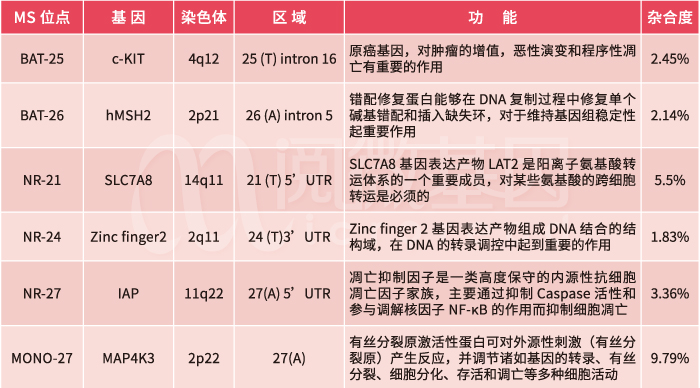 同时,这些位点所在的基因参与了基因转录调控功能、肿瘤的发生和凋亡及错配修复等,进一步验证了微卫星不稳定状态可能通过影响上述基因的表达调控引发肿瘤的发生。