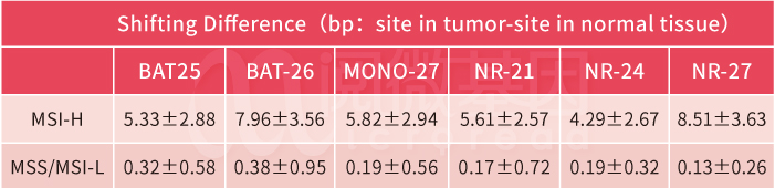 为了验证六位点MSI Panel的灵敏度与特异性,阅微基因进行了大量临床样本的验证。我们从微卫星的位移值检测的准确性和漏诊率等方面,对试剂盒的性能进行了分析和验证。