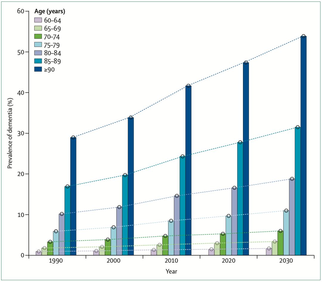 随着年龄增长阿尔茨海默病的发病率快速增加