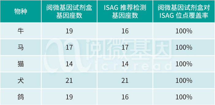 表1阅微基因动物STR试剂盒,物种及对应的常染色体STR位点数