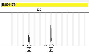 图4 人四碱基位点杂合子,在主峰前也有小的影子峰