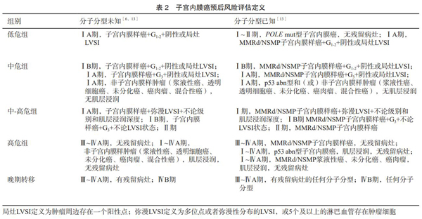 *对于III-IVA期POLEmut子宫内膜癌和I-IVA期MMRd或NSMP透明细胞癌伴有肌层浸润,没有足够的数据将这些患者在分子分类中分配到预后风险组。
