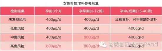 因此2008年中国疾病预防控制中心妇幼保健中心,把叶酸利用能力基因检测与风险评估列为临床应用指南,建议准妈妈在补充叶酸前进行叶酸利用能力基因检测,并根据MTHFR和MTRR基因检测结果进行风险分级,个体化差异化的补充叶酸。