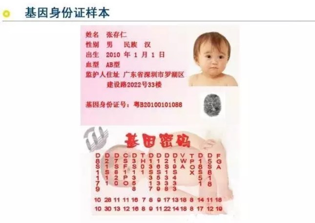 PS:目前基因身份证检测信息只是区别身份差异的DNA信息,不含有与身体健康相关的信息。