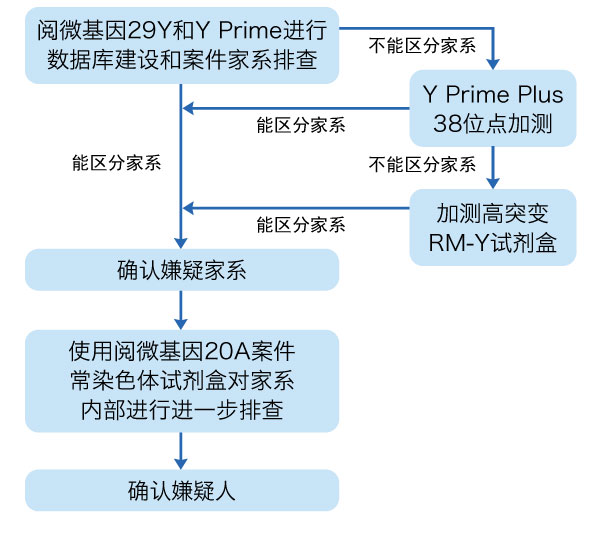 采用6色荧光,包括了中国公安部公布Y建库指导要求的20个核心基因座和全部的15个优选基因座,此外还包含1个多拷贝位点(DYF404S1)、1个适于中国人群的Y-indel,包括了目前国内各生产商所采用的绝大部分Y基因座,将其应用于建库工作,获得的数据可以和公安部DNA数据库比对,从而大大提高DNA数据库的应用效率,单倍型分析的识别能力,具有更高的个体识别率。