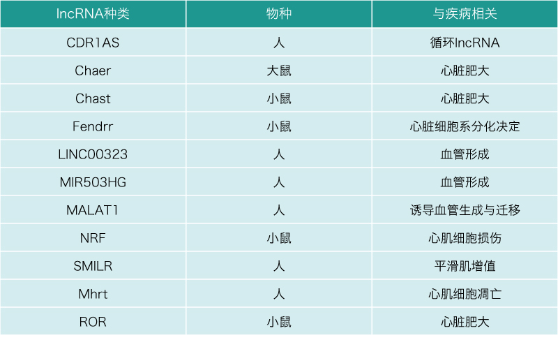 lncRNA研究相对miRNA起步较晚,大部分还处在探究lncRNA与心血管疾病之间关联的层面: