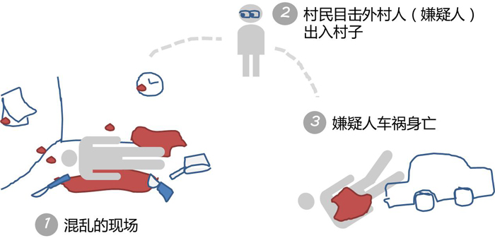 加害人疑患精神疾病,并未清理现场。有村民目击外村人员(嫌疑人)出入。