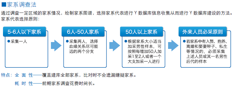 Y染色体属男性特有,是父系遗传,不考虑突变情况下同一家系父系男性成员拥有相同Y-STR单倍型,在刑事侦查中可快速进行家系排查,实现“以Y找群,以常找人”,缩小侦查范围。