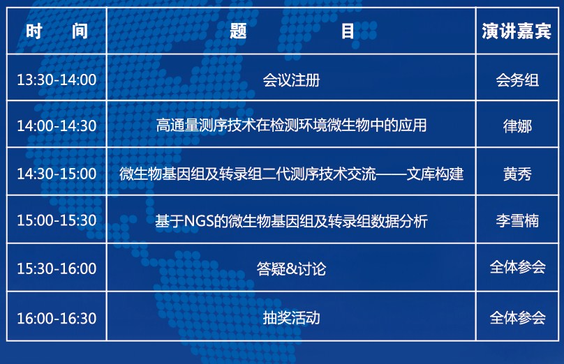 本次研讨会将汇聚高通量测序领域有所建树的专家及科研技术人员于一堂,围绕高通量测序技术在环境微生物中的应用、包括扩增子、转录组测序在内的高通量测序技术的原理、建库过程及数据分析等议题进行广泛的交流与合作。