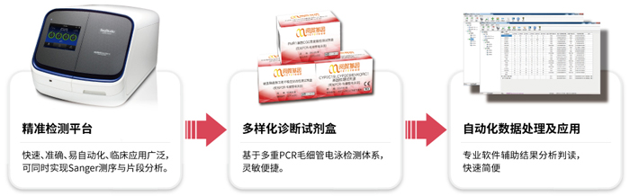 阅微基因作为基因检测上游生产商,拥有一系列自主研发的试剂盒,同时拥有配套测序仪及自动分析软件,可以为临床医生提供一站式整体解决方案。