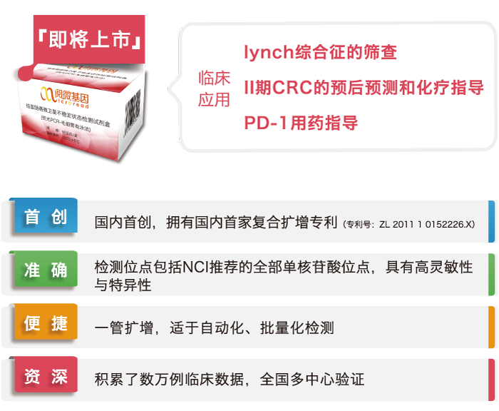 与正常组织相比,微卫星不稳定性(microsatellite instability,MSI)是肿瘤中某一微卫星由于重复单位的插入或缺失而造成的微卫星长度的任何改变。大量研究表明,MSI是由错配修复(MMR)基因发生缺陷引起的,与肿瘤的发生密切相关。临床上,包括NCCN、ASCO、ESMO和《中国结直肠癌诊疗规范》在内的多个权威指南已将MSI作为结直肠癌预后和制定辅助治疗方案的重要分子标志物,并应用于协助Lynch综合征的筛查。此外,PD-1抑制剂通过激活人体自身的免疫系统对抗肿瘤细胞,是近年来肿瘤免疫疗法研究的热点。MSI可指导PD-1用药,提高PD-1药物使用的疗效。