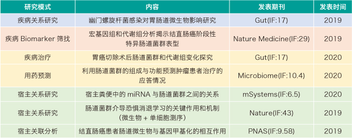 近年,肠道菌群研究在众多疾病类型上取得了丰硕的成果,部分成果进入了转化应用阶段。尤其在胃肠道疾病、慢病和精神类疾病研究上,关注度非常高。肠道菌群在疾病领域的研究模式大致可分为肠道菌群和疾病关系研究、疾病标志物筛找、疾病治疗、宿主关联分析和单一菌种研究五大方向。