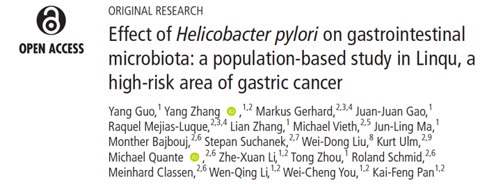 Guo, Yang, et al. "Effect of Helicobacter pylori on gastrointestinal microbiota: a population-based study in Linqu, a high-risk area of gastric cancer." Gut (2019).