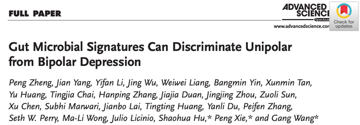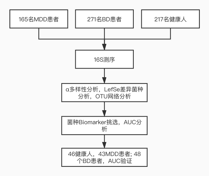 · 研究内容:肠道微生物组有效鉴别重性抑郁障碍(MDD)和双相情感障碍(BD)