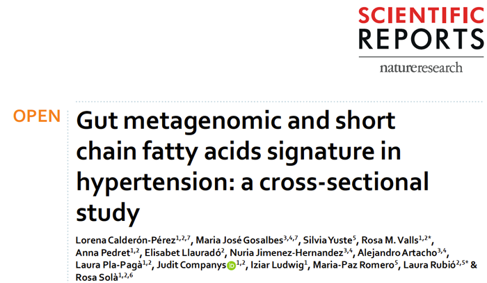 Calderón-Pérez, Lorena, et al. "Gut metagenomic and short chain fatty acids signature in hypertension: a cross-sectional study." Scientific Reports 10.1 (2020): 1-16.