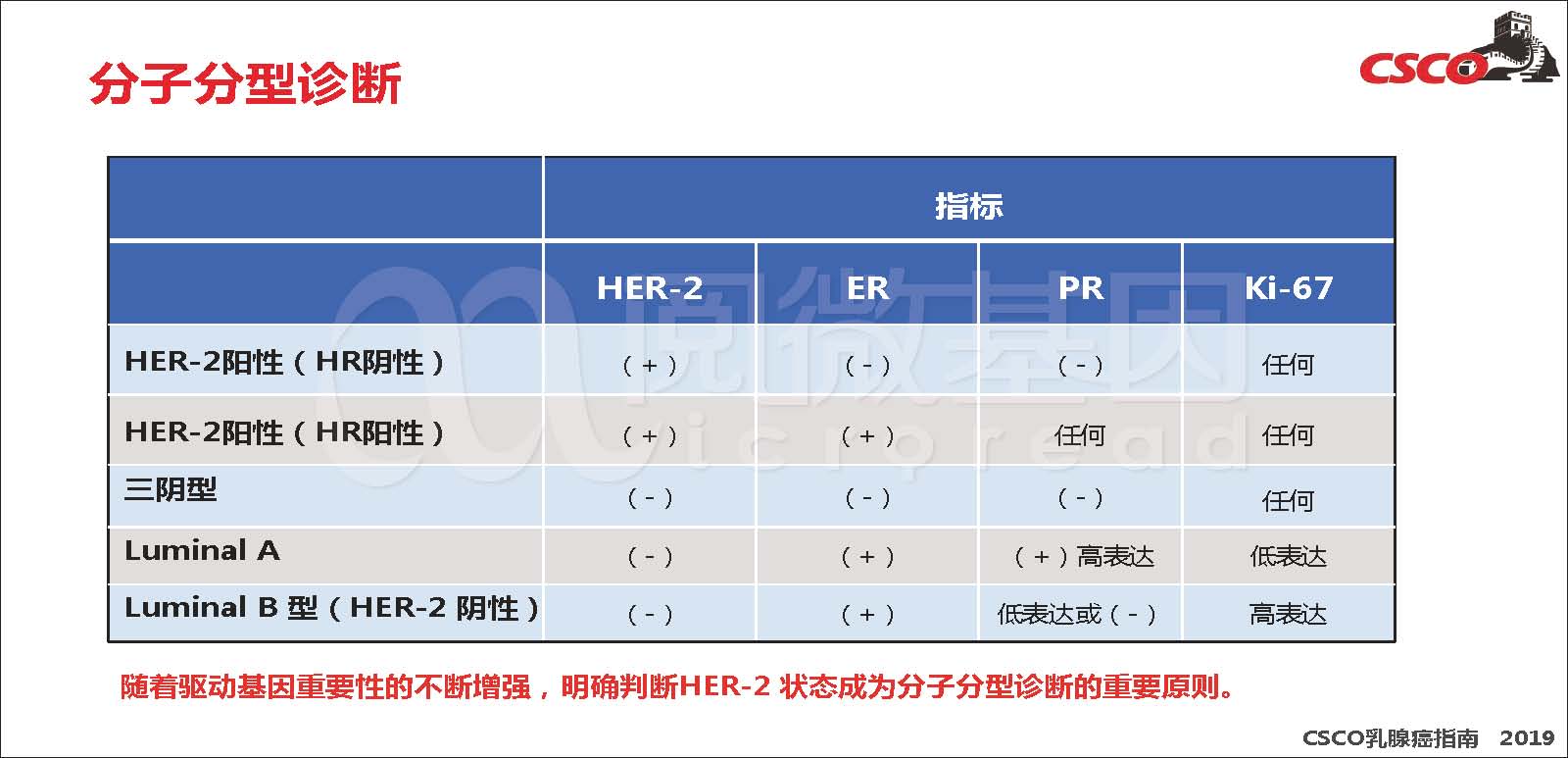 近日,《2019CSCO乳腺癌诊疗指南》重磅发布。随着驱动基因重要性的不断增强,明确判断HER-2状态已成为分子分型诊断的重要原则,指南中对各种受体状态下的术前新辅助治疗、术后辅助治疗、晚期乳腺癌的解救治疗等方面进行了更新,且新增了NGS、液态活检、人工智能等内容。