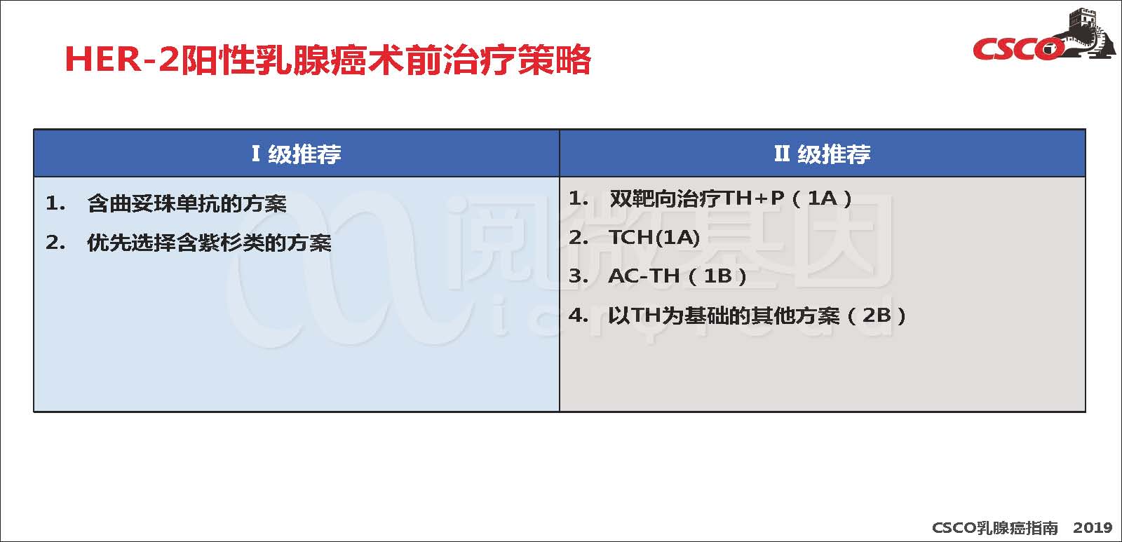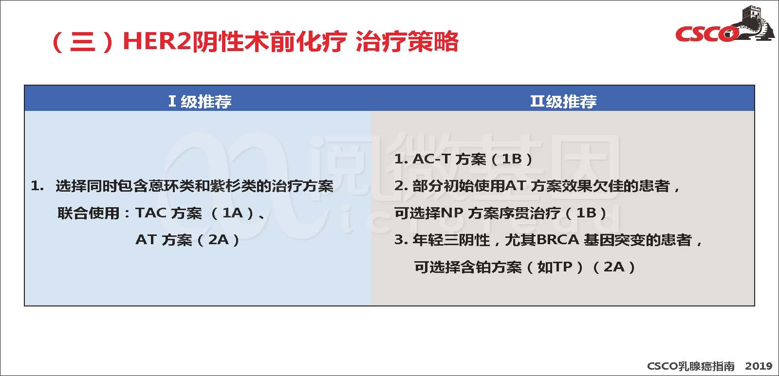抗HER-2一线治疗I级推荐中,NH证据由1A调整为2A,由I级推荐调整为II级推荐。