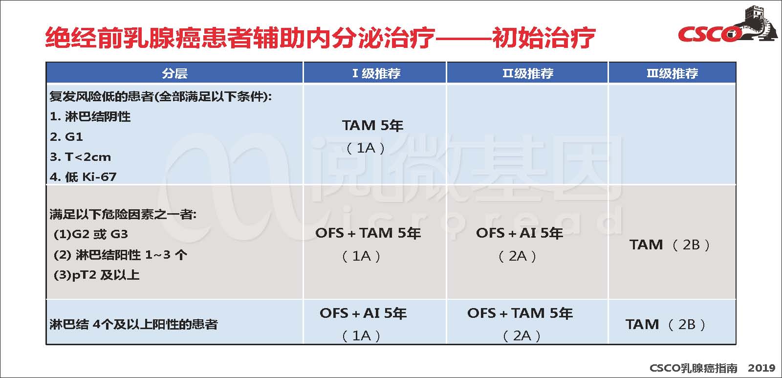 初始治疗以OFS+TAM作为I级推荐适应症删除“或有辅助化疗指征,但不愿接受化疗患者”。