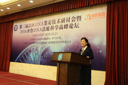 山东省司法厅党委副书记、副厅长马灵喜同志,济宁医学院党委副书记、院长白波教授,济宁医学院副院长、附属医院党委书记司传平教授,山东司法鉴定协会副会长、济宁医学院法医学院院长、司法鉴定中心主任崔文教授,济宁医学院科研处处长孔庆胜博士等领导莅临本次大会。由济宁医学院副院长、附属医院党委书记司传平教授,济宁医学院院长白波教授,山东省司法厅党委副书记、副厅长马灵喜同志和北京阅微基因技术有限公司董事长陈初光分别致开幕词,为大会揭开序幕。