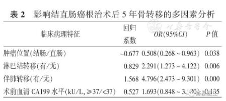 结直肠癌根治术后5年内骨转移的危险因素分析