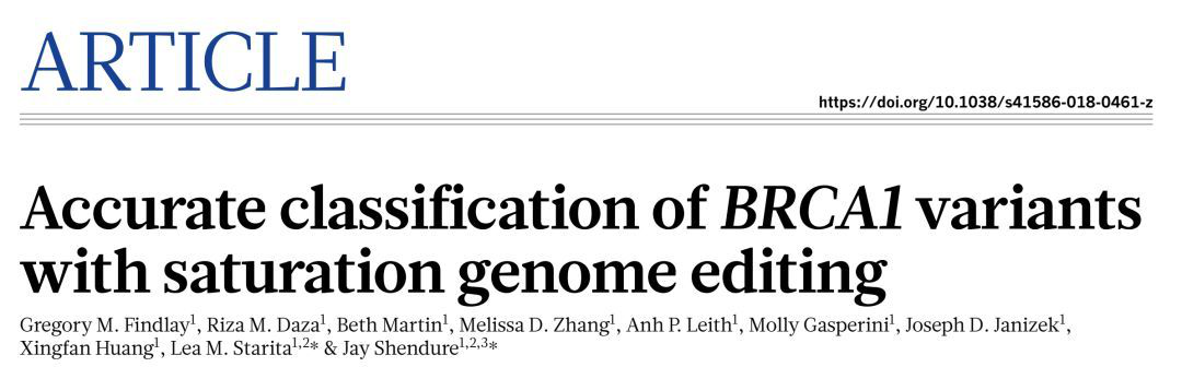 [3] Findlay, G. M., et al. (2018). Accurate classification of BRCA1 variants with saturation genome editing. Nature. DOI:10.1038/s41586-018-0416-z