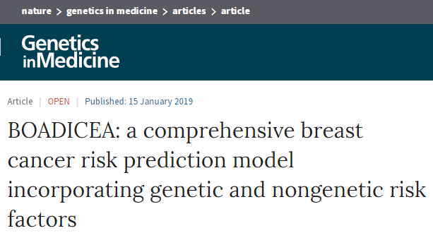 2)BOADICEA: a comprehensive breast cancer risk prediction model incorporating genetic and nongenetic risk factors
