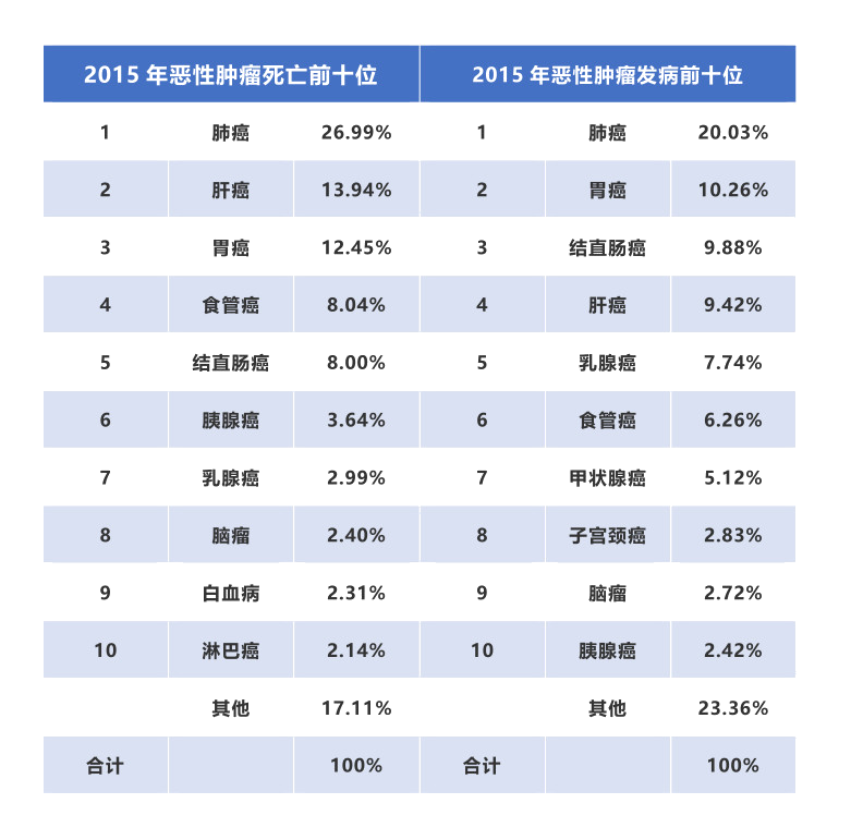 2015年恶性肿瘤发病约392.9万人,死亡约233.8万人。平均每天超过1万人被确诊为癌症,每分钟有7.5个人被确诊为癌症。与历史数据相比,癌症负担呈持续上升态势。近10多年来,恶性肿瘤发病率每年保持约3.9%的增幅,死亡率每年保持2.5%的增幅。