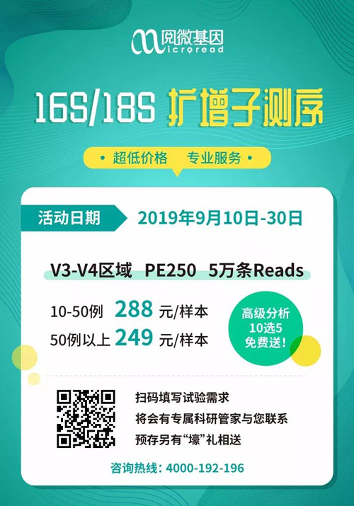 16S/18S测序开学大促,高级分析免费送,预存另有“壕”礼相送!