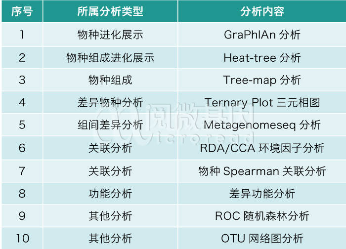 阅微基因可提供高达31项常规分析和17项高级分析的“最”全生信分析内容,无惧比较,并接受个性化定制需求。