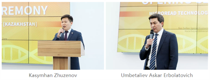 2019年12月4日,阅微科技(哈萨克斯坦)有限责任公司(MicroRead Technology Kazakhstan Co.,Ltd,下文简称“哈萨克斯坦阅微”)于哈萨克斯坦首都努尔苏丹正式开业。阅微基因董事长陈初光先生、纳扎尔巴耶夫大学校长助理Kanat Baigarin先生、努尔苏丹市政府经济特区负责人Dosanov Ardak先生等数十位社会各界领导莅临纳扎尔巴耶夫大学的玻璃金字塔出席本次开业典礼,共同宣布哈萨克斯坦阅微正式投入运营。