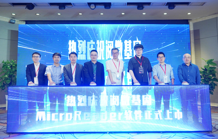 开场致辞之后,在会议主持人肿瘤及生殖事业部东区总监李可的邀请下,阅微基因董事长陈初光先生、阅微基因临床事业部总经理陈启刚先生、阅微基因临床事业部副总经理郭中华先生、临床市场部总监郑朋先生、上海市第十人民医院郑佳谊教授、IVD资讯主编张洪华先生、经销商代表聂瑞军先生和霍柏林先生登台,共同开启了Microreader™基因分析仪数据分析软件的上市仪式,将会场氛围推向高潮。