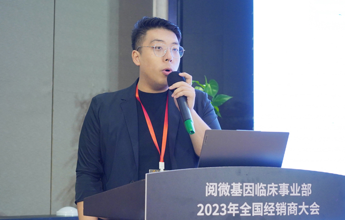 阅微基因临床市场部总监郑朋先生分别针对阅微基因在KOL、科研合作、指南共识、学术活动等方面的布局,多方位讲解了阅微基因2023年临床市场策略。“肿瘤领域以MSI为核心产品,布局消化道肿瘤和妇科肿瘤,国内先进的POLE基因检测解决方案和一管17个位点精准分型的KRAS/NRAS/BRAF联合检测可在妇瘤和消化道肿瘤中持续发力。生殖遗传领域借助CE平台金标准的特性和STR检测的独占性应用,分别布局染色体非整倍体检测联合母源污染检测及单亲二体检测的产前诊断Panel和脆性X检测联合SMA及耳聋检测的产前筛查Panel,筛查诊断齐头并进。精准用药领域,借助CE平台多联检的天然优势以及免提取技术,可实现一滴血,2.5小时,多种药品精准指导。2022临床市场已筑牢基础,2023必将实现新飞。”