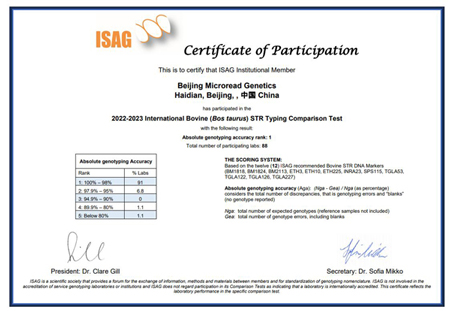 满分通过|阅微牛STR个体识别和亲子鉴定试剂盒获2022-2023年ISAG室间质评认证