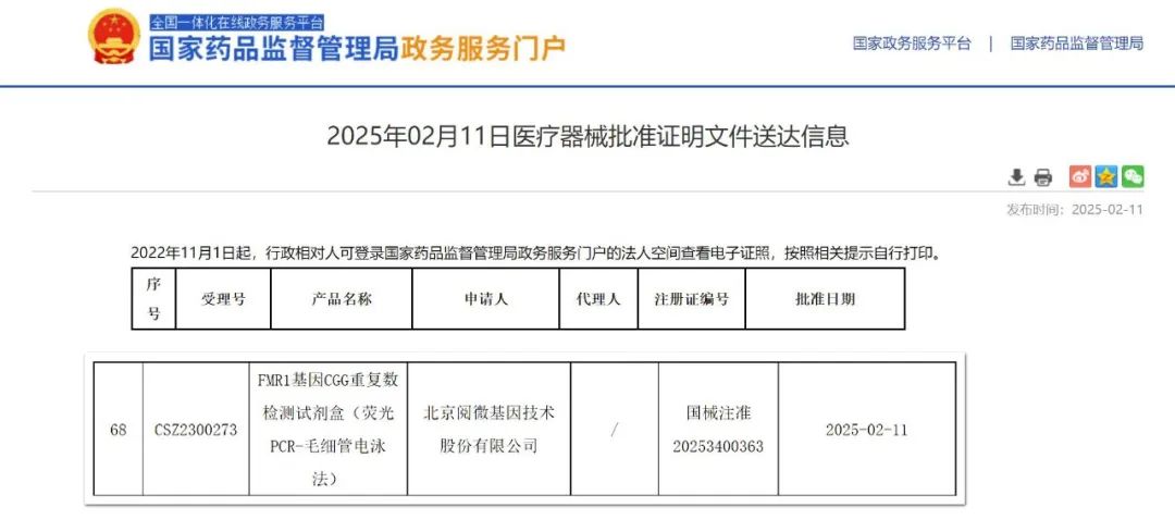 喜讯 | 阅微基因脆性X综合征基因检测试剂盒获批!